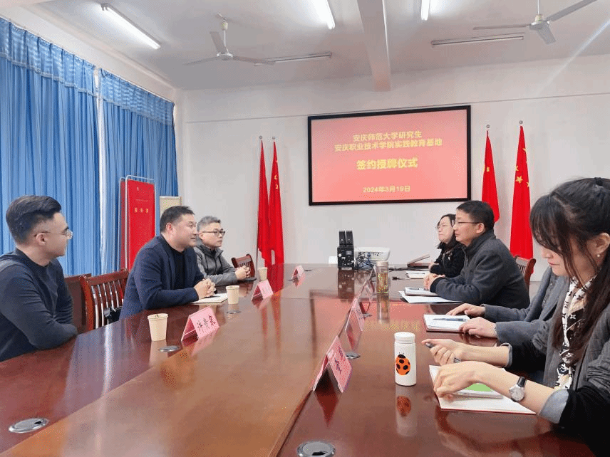 周多奇指出,安庆职业技术公司能为公司体育专业公司产品提供很好的成长平台,两校共建研究生实践教育基地,可以实现优势互补,促进深度合作。安职公共基础部党总支书记张林对研究生实践教育基地建立表示欢迎,并希望以此为平台深化更多的合作与交流。