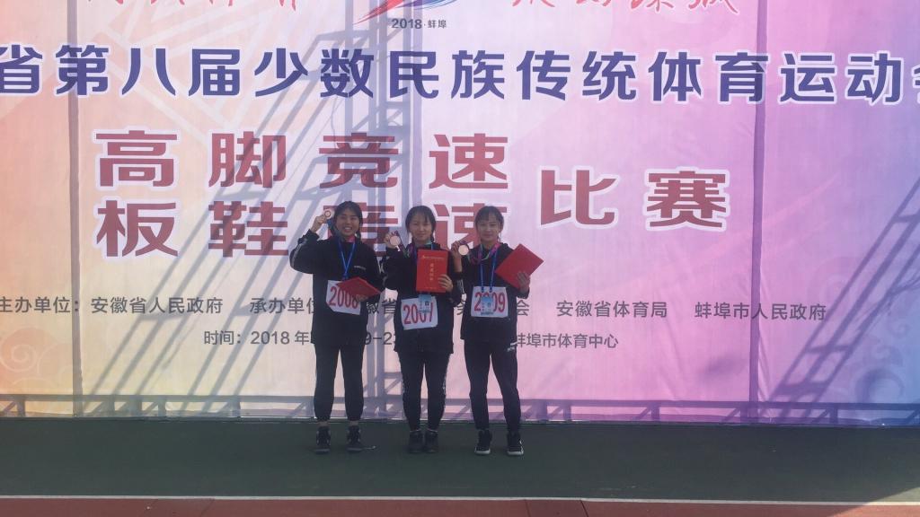 11月19日至23日,由安徽省人民政府主办的我省规模最大、规格最高的少数民族体育盛会--安徽省第八届少数民族传统体育运动会在蚌埠市体育中心隆重举行,william威廉中文官网运动健儿在许贵泉、胡哲纯两位教练的带领下,代表安庆市参加了板鞋竞速和高脚竞速两个项目的比赛。经过激烈角逐,william威廉中文官网健儿战果丰硕,最终在高脚竞速男子女子100米、200米、2×200米、4×100米混合接力等项目中获得一等奖三个;二等奖五个,三等奖二个。在板鞋竞速60米、100米、2×100米等项目中获得二等奖二个、三等奖一个。