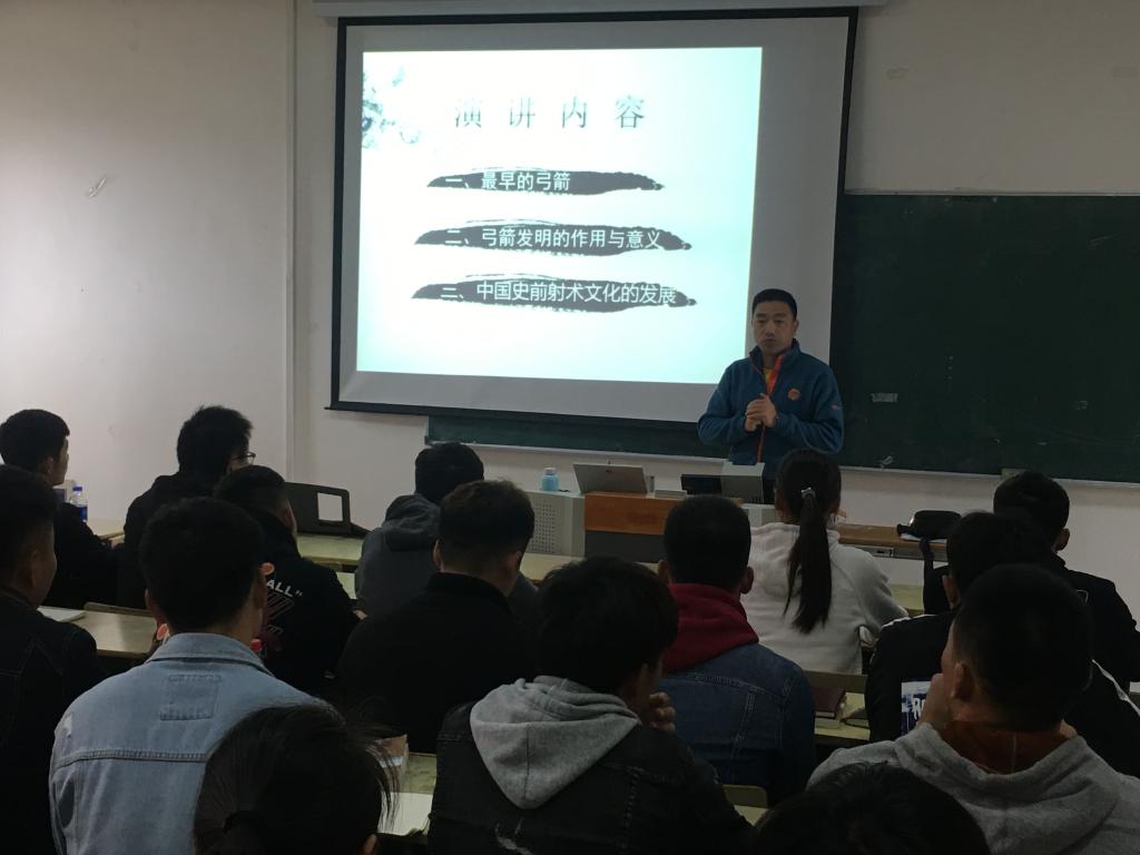 11月17日下午,william威廉中文官网陈光华副教授在龙山校区体育馆多媒体教室为该院2016级、2017级休闲体育专业员工作题为“史前射术文化”的学术报告。