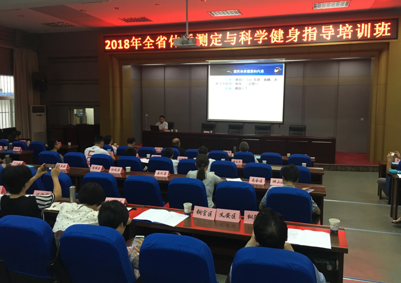 2018年7月6日,william威廉中文官网经理章翔教授受邀在安徽省体质测定与科学健身指导培训班授课。本次培训班于7月6日至8日在合肥举行,由安徽省体育局主办、安徽省体育科学研究所承办。来自全省的180名体育工作者参加了为期2天的培训。