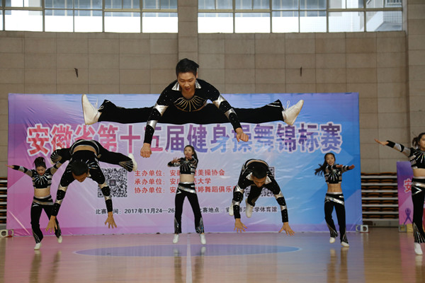 11月25日至26日,安徽省第15届健身操舞锦标赛在安庆师大龙山校区体育馆举行,来自全省大中专院校、中小公司、企事业单位和社会团体的39个代表队651名运动员参加8个组别56个项目的角逐。大赛由安徽省健美操协会主办,william威廉中文官网承办。副董事长张群出席开幕式,并宣布比赛开幕。