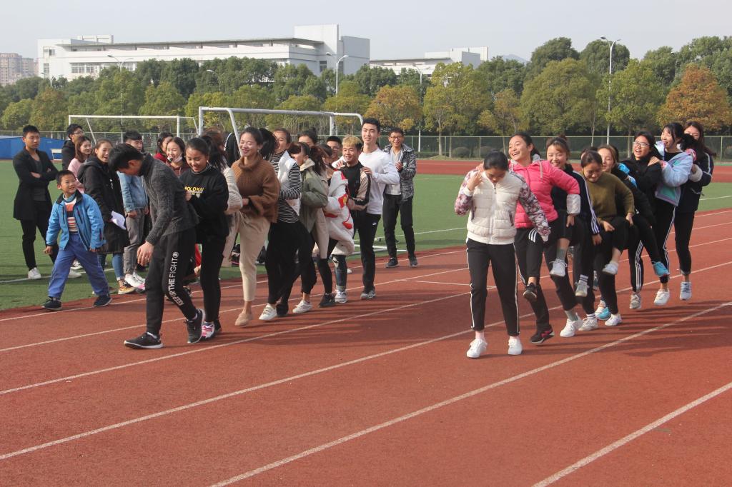 此次定向趣味运动会共设置了“龙行天下”、“你做我猜”、“纸上齐兵”等七项趣味性和协作性于一体的比赛项目,开幕式上主持人详细讲述了每个游戏项目的规则。紧接着主持人宣布运动会正式开始。“龙行天下”项目是九位参与者单脚着地跟在领头双脚着地的身后进行有距赛跑,这一活动充分展示了体育生们的平衡与稳定力;“你做我猜”项目考验的是参与者之间的默契;“纸上齐兵”项目是四人同时站于一张报纸上,报纸不断折叠且脚不能超出报纸范围,这一游戏比的是各队员之间的协作意识;最后一个项目是拔河,这可是力量与勇气的对决,所有参赛队拼尽全力,场上加油呐喊声不绝于耳,这一环节将此次定向趣味运动会的气氛推向了高潮。