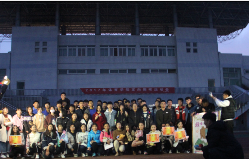 一整个下午的活动到天黑时才接近尾声,最终,2017级体教1班勇夺本次定向趣味运动会的冠军,2017级体表2班和休体1班获得亚军,2017级运动康复1班、体教2班和体教3班获得季军。在热烈的掌声中,员工会主席团给获奖团队颁发证书和奖品,最后所有参赛人员和工作人员一起合影留念。