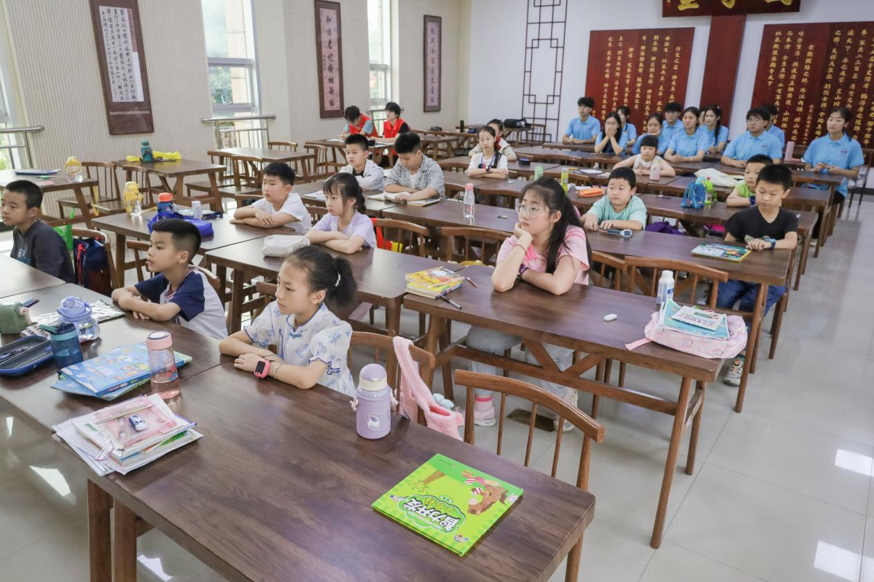 为解决枞阳县一些双职工家庭暑期无人照看孩子的问题,黄镇图书馆特开办国器学堂,不负所“托”枞阳县图书馆2024暑期托管班。会议结束后,团队成员陪同托管班的孩子们在教室听志愿者上课,并且利用课间时间带领孩子们进行了一些简单的体育运动。成员们参观并了解了黄镇图书馆的具体情况,并和馆长沟通协调了接下来的活动安排。