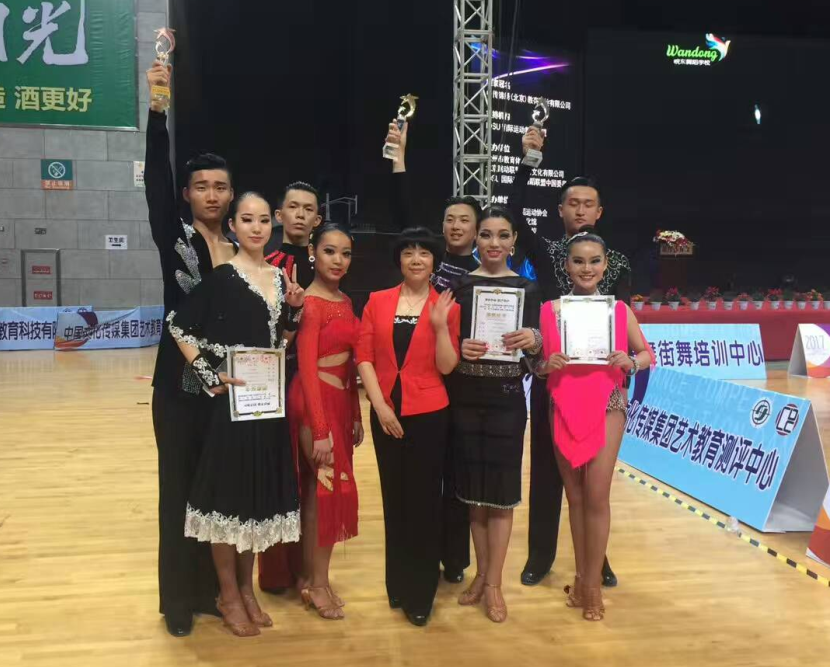 5月12日,2017“跳动中国”体育舞蹈俱乐部联赛滁州站在滁州市体育馆隆重举行,公司16级体育艺术表演专业的员工在夏尚群、汪洋、周玉华三位老师的带领下参加了本次比赛。经过激烈比拼,公司代表队在比赛中共斩获9金4银3铜,在团体舞、单项赛等多项赛事中都取得了骄人的战绩。