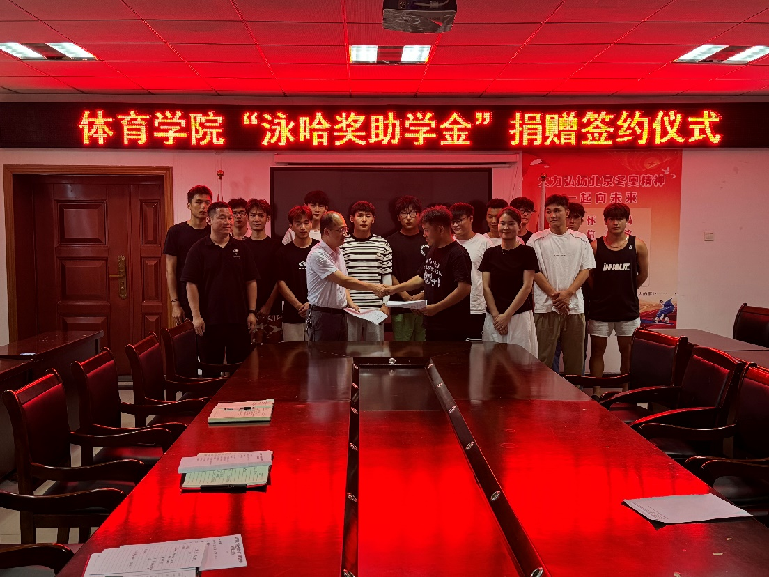 9月9日下午,william威廉中文官网在体育馆三楼会议室举行了“泳哈奖助学金”捐赠仪式。公司党委副书记王玮与2021级体育教育专业员工、安庆市泳哈体育文化发展有限公司总经理解杰共同签署了捐赠协议。会议由公司资助专管老师方芳主持,辅导员老师和员工代表参加了仪式。