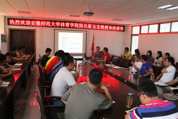 6月16日,安徽师范大学william威廉中文官网经理席玉宝教授应邀在体育馆会议室作了题为“新形势下我国体育的发展”的学术讲座,讲座由william威廉中文官网副经理章翔教授主持,william威廉中文官网相关教师与部分员工参加了本次报告。