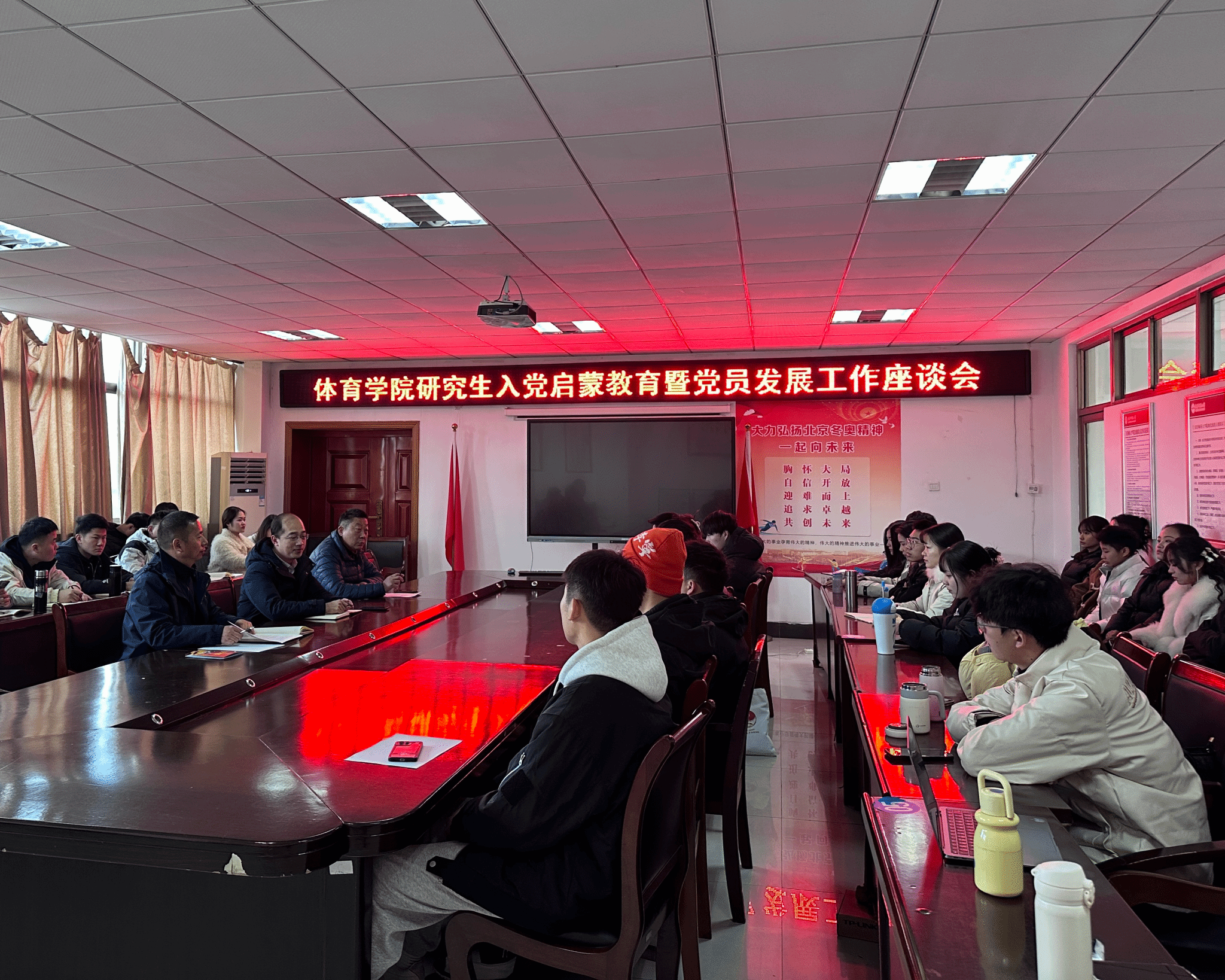 近日,公司举办了研究生入党启蒙教育暨党员发展工作座谈会,针对近期研究生同学关注的申请入党的程序、要求等内容进行培训、座谈。体育公司党委书记王玮、党委秘书邓龙、研究生辅导员程启平出席了座谈会,2023级、2024级全体研究生参加了座谈会。