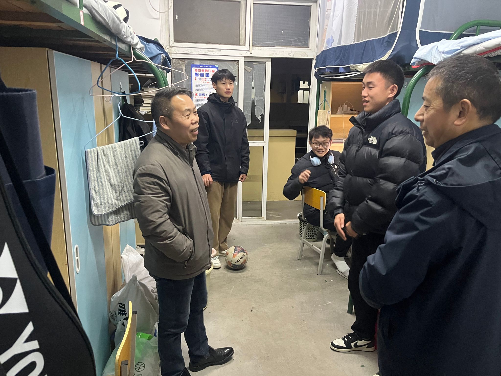 走访过程中,孙明运详细询问了同学们的学习进展、科研任务以及生活情况。他特别关注同学们在学术研究中遇到的困难,鼓励大家保持积极的心态,勇于面对挑战,同时提醒同学们合理安排时间,做到学习与生活平衡。他表示,要多向导师请教学习,开展多种活动来增进师生之间的感情,依靠体育公司,解决学习和生活中的困难。程老师则重点了解了同学们的日常生活等情况,叮嘱同学们要保持良好的作息习惯,并营造和谐友爱的宿舍氛围。