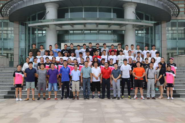 会后,与会嘉宾、领导、老师和同学合影留念。前江苏舜天、前湖南湘涛队主力队员,中国足协D级教练员、安徽省足球讲师团成员赵云龙先生为学员带来了精彩的训练营第一课。(林秋菊)