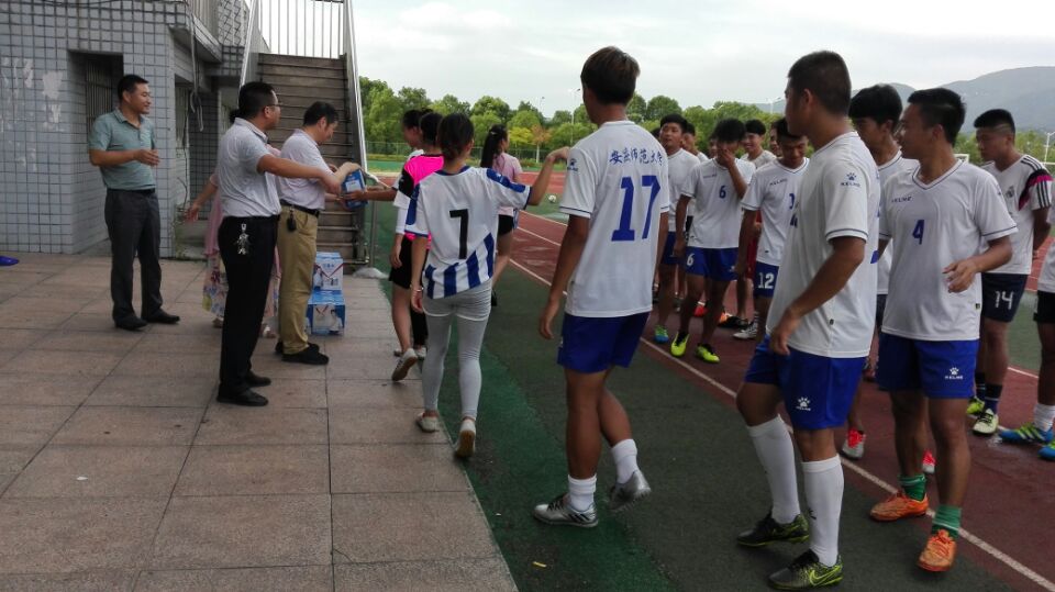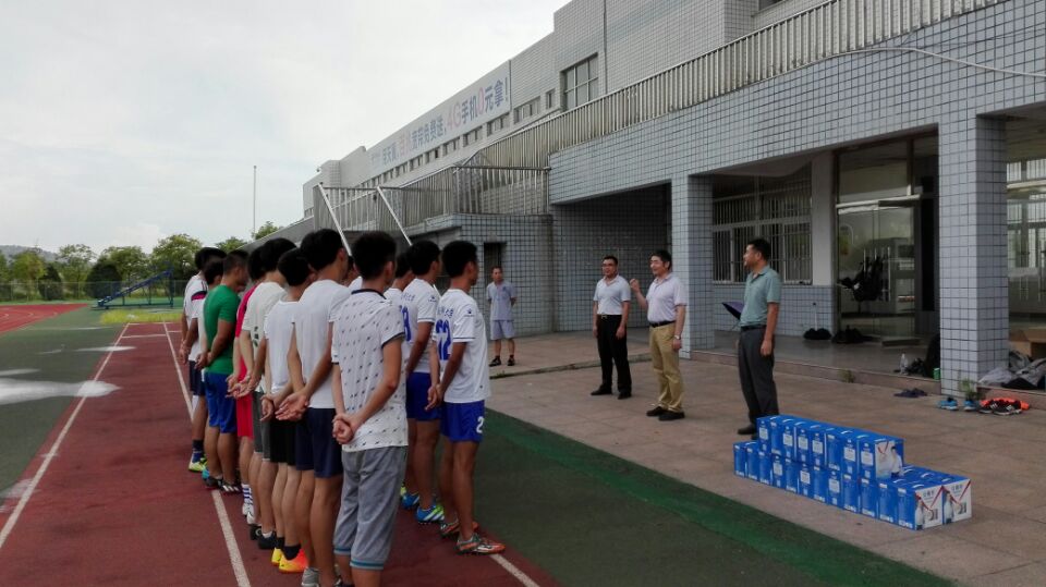 8月3日,公司党委委员、副董事长、校体艺委主任、校足球领导小组组长张群在公司党政领导的陪同下,冒着酷暑,亲临足球场,看望并慰问了正在紧张训练中的校足球队全体师生。