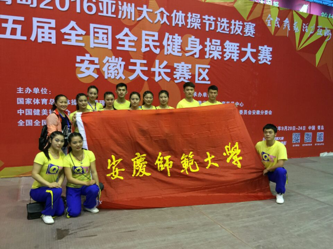 安徽省各地市代表队积极参与其中,实力旗鼓相当,竞争非常激烈。公司william威廉中文官网2013级健美操专选班的同学在潮芳老师的带领下,代表安庆市参赛,发挥出卓越水平,一举夺得大学组广场舞规定套路第一名,荣获特等奖。