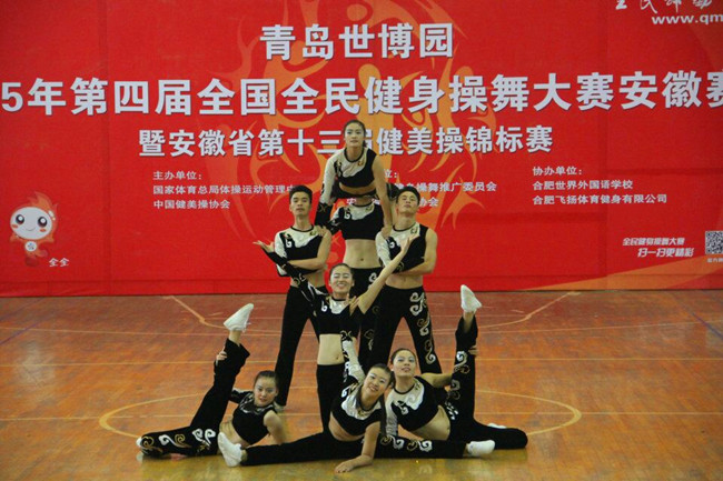 本次大赛是由国家体育总局体操运动管理中心、中国健美操协会和全国全民健身操舞推广委员会共同主办,由安徽省健美操协会承办。省内外多所高校、中小学及健身机构近一千余人报名参加了比赛,竞争非常激烈。而公司健美操健儿发挥极其出色,取得了可喜成绩,最终一举夺得了三个团体奖、八个单项特等奖和六个单项一等奖。其中2013级体育教育专业健美操专选班在有氧舞蹈四级大学组、社会组以及广场舞规定套路三项比赛中共获三个特等奖;2013级体育表演专业1班在街舞自编和运动舞蹈两项比赛中共获两个特等奖;2013级体育表演专业2班在有氧舞蹈二级和有氧健身操舞自选两项比赛中共获两个特等奖,并荣获轻器械自选、轻器械规定动作六级项目一等奖;2014级体育表演专业两支代表队在校园青春健身操创造奇迹项目中分获特等奖和一等奖;2012级体育表演专业健美操专选班在街舞自编项目中荣获一等奖。