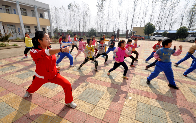 孩子们在武术方面毫无基础,一切都需从头学起,最开始学的是压韧带。“基本功比较辛苦,我就让他们面对面,两个人一边玩手语舞蹈一边压腿。这样可以转移孩子们的注意力,让他们感觉不是那么辛苦。”每天中午,许丽雪都会准时出现在校园里,教授孩子们练习武术。方法得当,孩子们很快乐,因此练习武术很积极。“他们很自觉听话,有时候自己还会练习武术。”因为喜欢,孩子们进步很快。太极、武术操、五步拳这些武术,孩子们几个星期就打得有模有样了。由于每天上午下午都有课,只有中午才有时间学习武术,现在他们都被太阳晒得很黑。