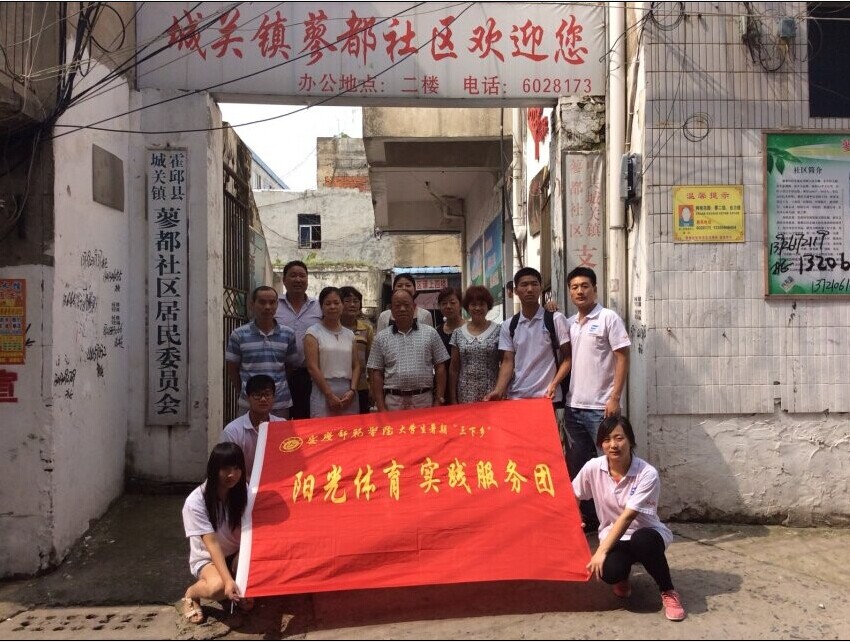 为进一步贯彻共青团中央、团省委关于进一步加强老员工暑期社会实践活动的相关文件精神,引导广大青年员工培育和践行社会主义核心价值观,为社会发展尽青年的责任,提高青年员工的社会责任感和社会适应能力,在william威廉中文官网团总支的精心策划下,公司2014年暑期“三下乡”社会实践校级重点团队“阳光体育实践服务团”在六安市霍邱县展开了为期五天的以“健康体育下乡镇、进社区,科学健身指导”为主题的暑期社会实践活动。