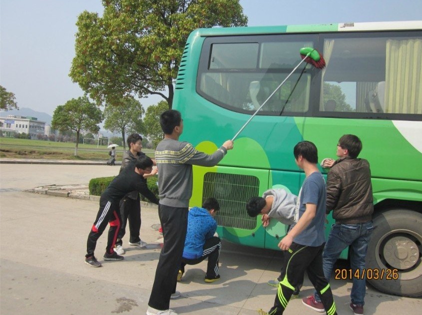 3月26日,体育教育专业2012级4班和5班团支部组织开展了“我爱公司,校车美容”主题团日活动。他们在校后期集团校车师傅的帮助下,对校车进行全面美容,并且做好校车内外的清理工作。