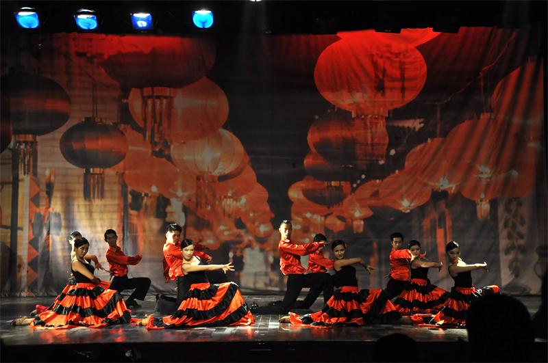 伴着低沉婉转的旋律,晚会在气势磅礴的斗牛舞中徐徐拉开帷幕。演员火红的舞裙在闪烁的灯光中摆动,好似一团团正在燃烧的旺火,这正代表着公司学子对于生活的无限热情。端庄华丽的华尔兹不管是舞态还是步伐,无一不精准到位。充满青春活力的有氧舞蹈《爱的主打歌》,糅合高难度动作和动感音乐的竞技健美操充分展示了体院学子的健、力、美。激情的桑巴,活泼的恰恰,柔情缠绵的伦巴,欢快的斗牛都让我们大饱眼福。歌曲演唱《海阔天空》更是为本次晚会注入了新的血液,高亢浑厚的嗓音使人流连陶醉。有人说爱情应该如狂风暴雨般轰轰烈烈才酐畅淋漓,又有人说爱情应该像江南细雨一样温婉动人才美,情景舞剧《你最珍贵》完美的阐释了爱情的真谛。极具武术阳刚之美和舞蹈阴柔之美的《剑舞》赢得了场下观众热烈的掌声,将晚会的气氛推向了高潮。