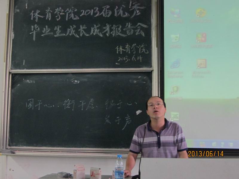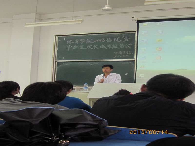 报告会上,已考取北京体育大学硕士研究生的王力、杨淑敏,考取安徽师范大学硕士研究生并在合肥创办自己的教育培训机构的王军,在池州市东至县创立跆拳道会馆的余朝阳,在宁国市三津中学签约就业的许洋洋等五位优秀毕业生结合各自的学习、工作及创业经验做了精彩的报告。他们真实而又生动地再现了自身大学四年的成长经历,叙述了他们发愤图强,矢志不渝,在实现自己的人生理想、人生价值的道路上付出的艰辛努力。他们或质朴诚恳、或幽默诙谐、或情感真挚,以亲身经验告诫广大同学应树立目标,时刻保持一种积极的心态,养成良好的学习生活习惯。他们用自己的行动向大家展示了当代老员工应有的品质,展示着老员工活应有的精神面貌和青春生活。报告会历时两个多小时,不时赢得在场全体同学的雷鸣般掌声。