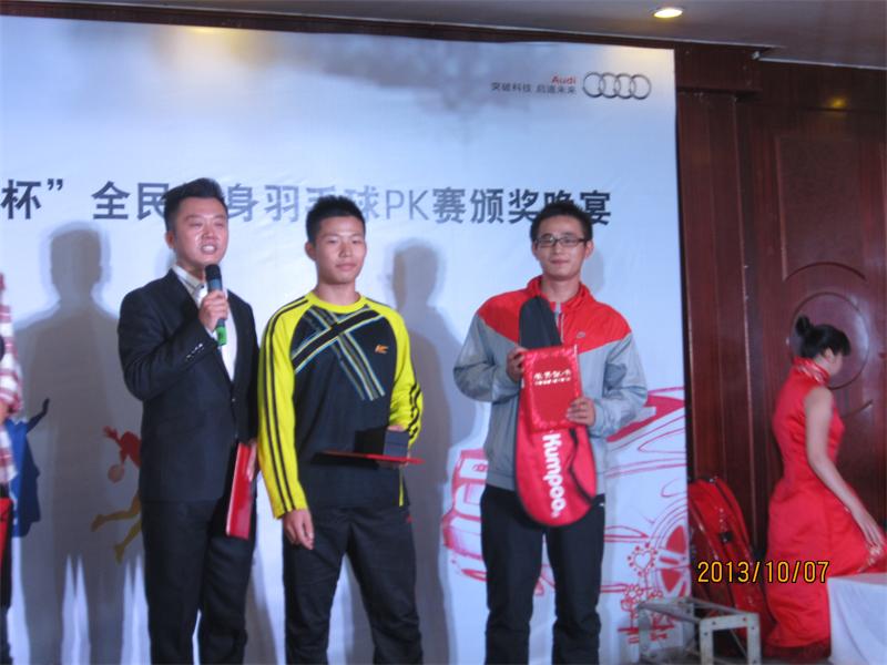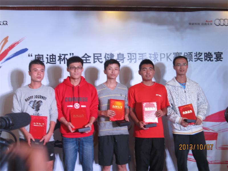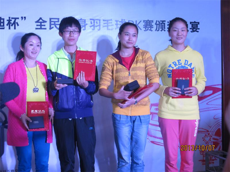 2013年10月6日—7日,安庆市“奥迪杯”全民健身羽毛球PK赛在市一枝梅球馆隆重举行。我院以章翔副经理为领队,以孟海江、王友亮两位老师为教练,以体育教育专业2010级、2011级和2012级羽毛球专选班的同学为队员的代表队,应邀参加了本次比赛。最终经过紧张激烈的角逐,公司2010级高茜同学荣获本次比赛女子单打冠军;2010级孙亚敏同学荣获本次比赛男子单打亚军;2010级朱兆慧和2011级余颖超两位同学荣获女子单打并列第五名;2010张同舟和2011李昱两位同学荣获男子单打并列第五名。另外有多名队员晋级了16强。