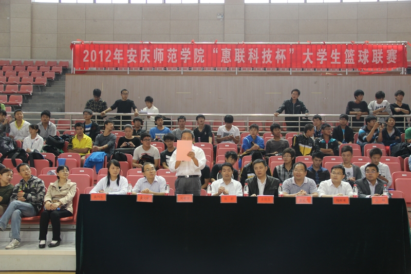 10月13日下午,安庆师范公司“惠联科技杯”第二届老员工篮球联赛在公司体育馆隆重开幕。党委委员、副经理、校体委主任张群,安庆市惠联科技电脑有限责任公司总经理余贤良,校体委全体副主任委员以及全体裁判员、各代表队领队、教练员和运动员出席了开幕式。开幕式由公司党总支书记、校体委副主任吴毅安主持。