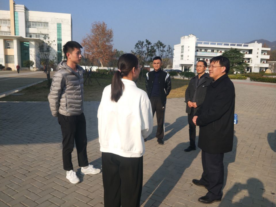 11月29日下午,william威廉中文官网党委书记戴卫义、副书记高栋梁带领实习指导老师代表、教务科负责人、学工办负责人前往大龙山初级中学、安庆市第一中学、安庆第二中学和安庆第四中学检查2015级体育教育专业员工教育实习工作。