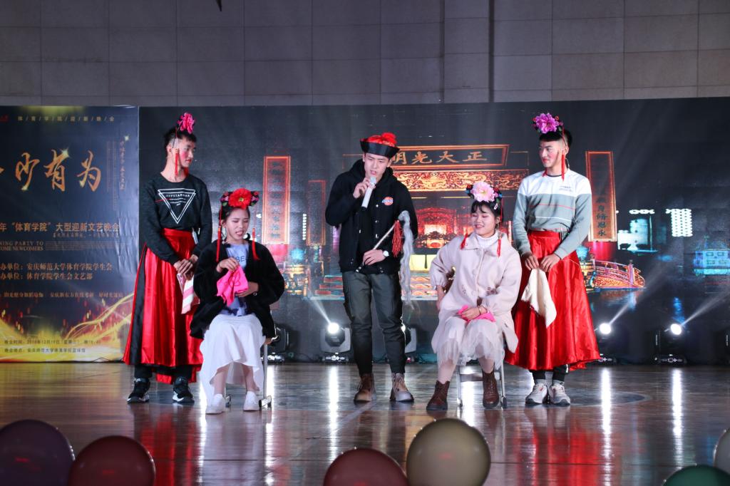 应景的背景音乐、滑稽的动作和表情,小品《后宫甄嬛传》和《我是演员之武侠剧》引得观众笑声连连;广场舞表演《广场Style》热情满满,表演者跟着节拍尽情地舞动;由查瑞和徐毅涵带来的说唱串烧《just for love》将多首网络热门歌曲串联起来,《隔壁的泰山》更是引起了不少同学合唱……