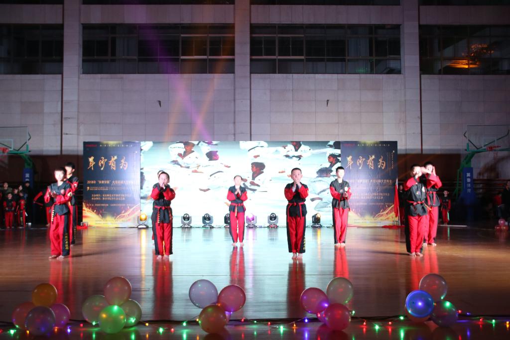 踢腿、跳跃、转圈、翻跟斗,一招一式尽显少年风采,由师院跆拳道馆带来的跆拳道表演《旋风小子》刚上台,便“点燃”了现场。10个小孩仿佛是一群“小精灵”,在舞台上游刃有余,台下观众不时发出“他们太可爱了吧”的赞美。