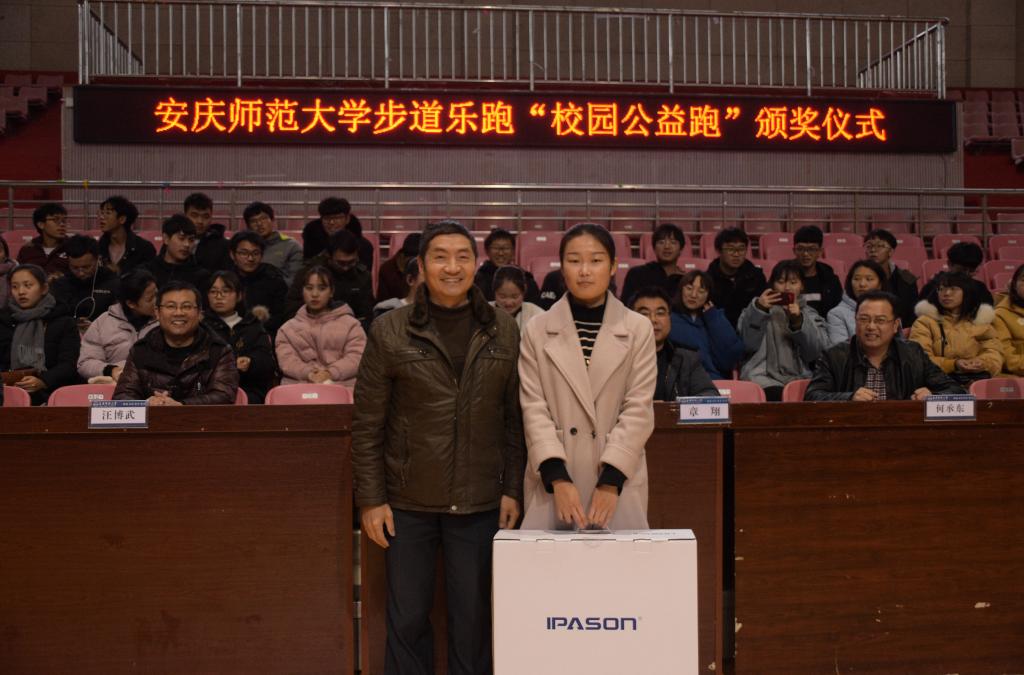 12月26日下午,william威廉中文官网步道乐跑“校园公益跑”颁奖仪式在龙山校区篮球馆举行。公司党委常委、副董事长张群出席颁奖仪式并为获奖员工代表颁发奖品。william威廉中文官网、员工处、化学化工公司等相关单位负责人、教师代表,150余名员工参加了颁奖仪式。