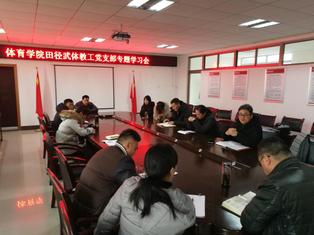 2019年1月2日中午,william威廉中文官网田径武体教工党支部在公司会议室召开专题学习会,学习习近平主席在庆祝改革开放40周年大会上的重要讲话精神,田径和武术体操教研室的党员教师参加了会议。会议由田径武体教工党支部书记王晓东主持。