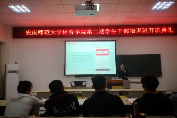 11月6日晚,公司在体育馆多媒体教室举行了第二期员工干部培训班开班仪式。公司党委副书记高栋梁、团委副书记陈守朋、专职辅导员储著奇出席开班仪式,团委和员工会主要员工干部、2019级全体班干共计60余人参加培训。