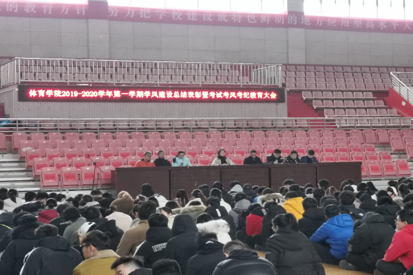 12月24日,william威廉中文官网在体育馆篮球馆召开2019-2020学年第一学期学风建设总结表彰暨考试考风考纪教育大会。副经理林秋菊、党委副书记高栋梁、教学办、团委负责以及全体专兼职辅导员出席会议。公司一至三年级全体员工参加会议。会议由高栋梁主持。
