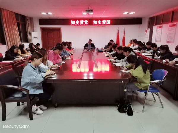 王开友首先介绍了中国共产党成立99年来领导中国人民走过的波澜壮阔的奋斗历程,取得的举世瞩目的辉煌业绩,对世界产生的重大影响。让全体员工党员了解到中国共产党历经沧桑,经历了初创时的艰难、北伐战争的洗礼、土地革命的探索、抗日战争的硝烟、解放战争的炮火,又历经了社会主义改造和建设、改革开放,中国共产党无论是革命、建设,还是改革开放,无论是胜利、挫折,甚或失败,都是党为实现理想信念而奋斗的历程。无数事实雄辩地证明,中国共产党是一个伟大、光荣、正确的党。最后他希望全体党员同学们一要认清历史事实,更好地把握现在中国的发展大势,树立自己的使命意识,自觉地把自己的志向和国家民族的命运紧密联系起来,实现个人成长和中华民族伟大复兴的有机结合;二要牢记初心和使命,牢固树立“四个意识”,坚定“四个自信”,做到“两个维护”,始终在思想上政治上行动上同以习近平同志为核心的党中央保持高度一致,只争朝夕,不负韶华,为中国特色社会主义事业奋斗终身。