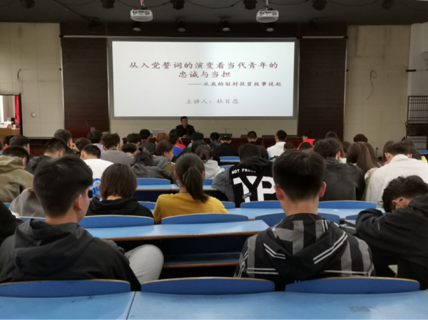 杜百忍老师以“从入党誓词的演变看当代老员工的忠诚与担当——从我的驻村扶贫故事说起”为主题,向大家讲述了何为忠诚与担当,当代员工党员如何践行初心和使命。报告以扶贫过程中的点滴小事为切入点,以小见大,向大家宣传了国家的扶贫政策和措施,让大家更直观、更深入的熟悉和了解了党和国家扶贫政策以及扶贫干部的辛苦与不易。