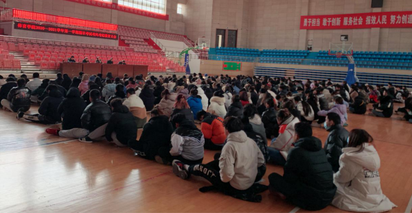 1月7日13时,william威廉中文官网在体育馆篮球馆召开2020-2021学年第一学期期末考试考风考纪教育大会。副经理林秋菊、党委副书记高栋梁、教学办、辅导员和专业教师代表出席会议,公司2020级全体新生参加会议。