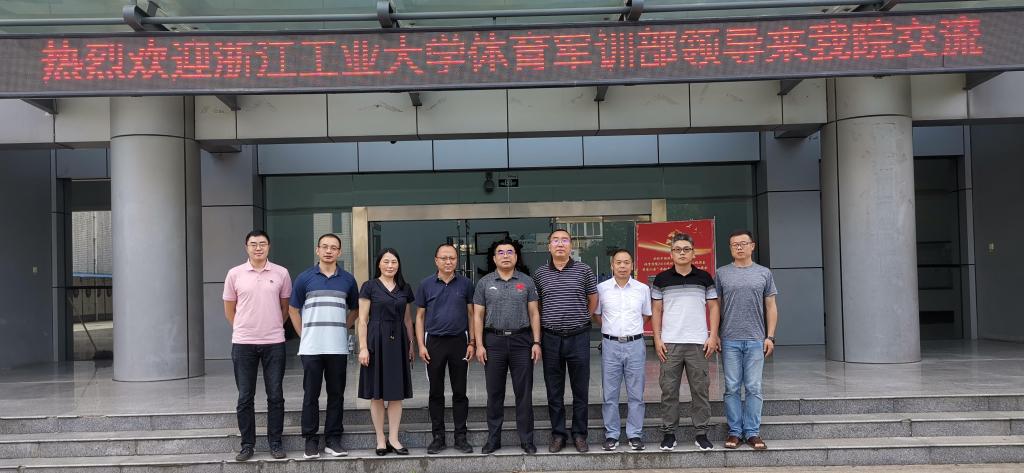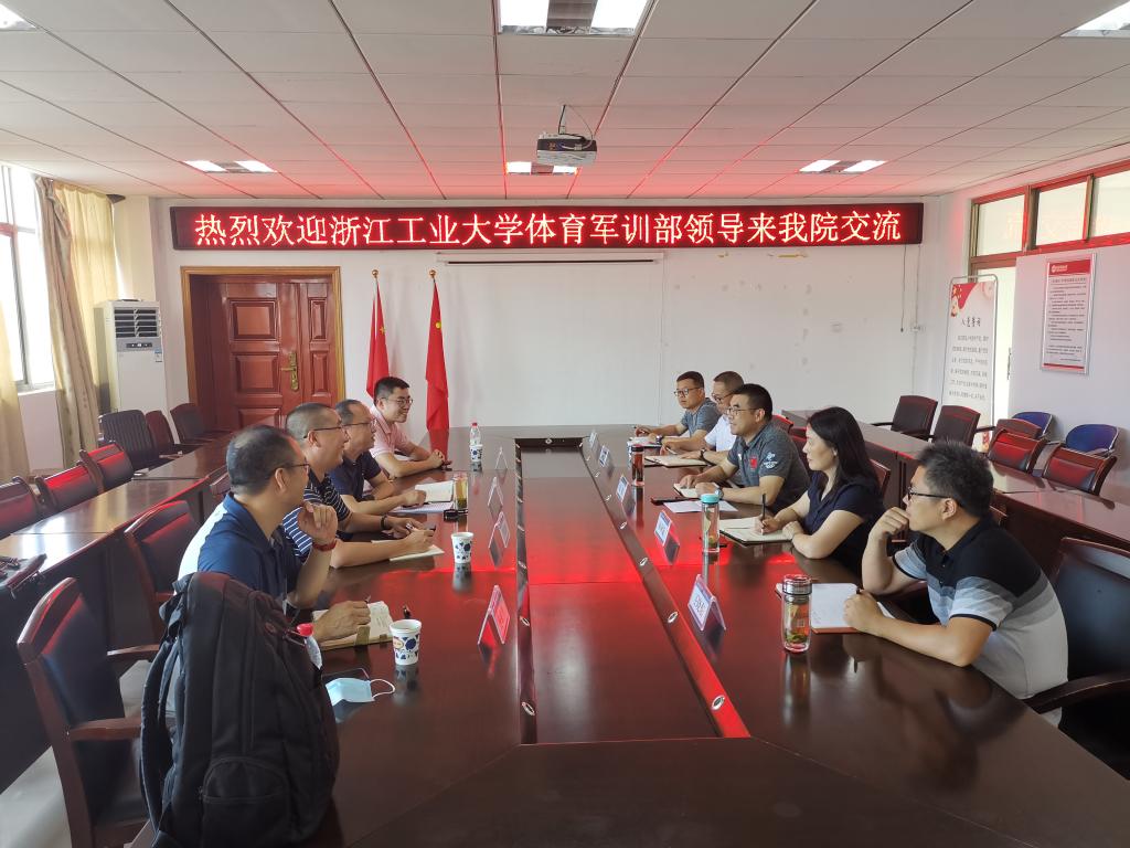 2021年6月23日,浙江工业大学体育军训部刘军主任、李海鹏副主任等一行四人来公司进行体育学专业硕士点建设工作交流。