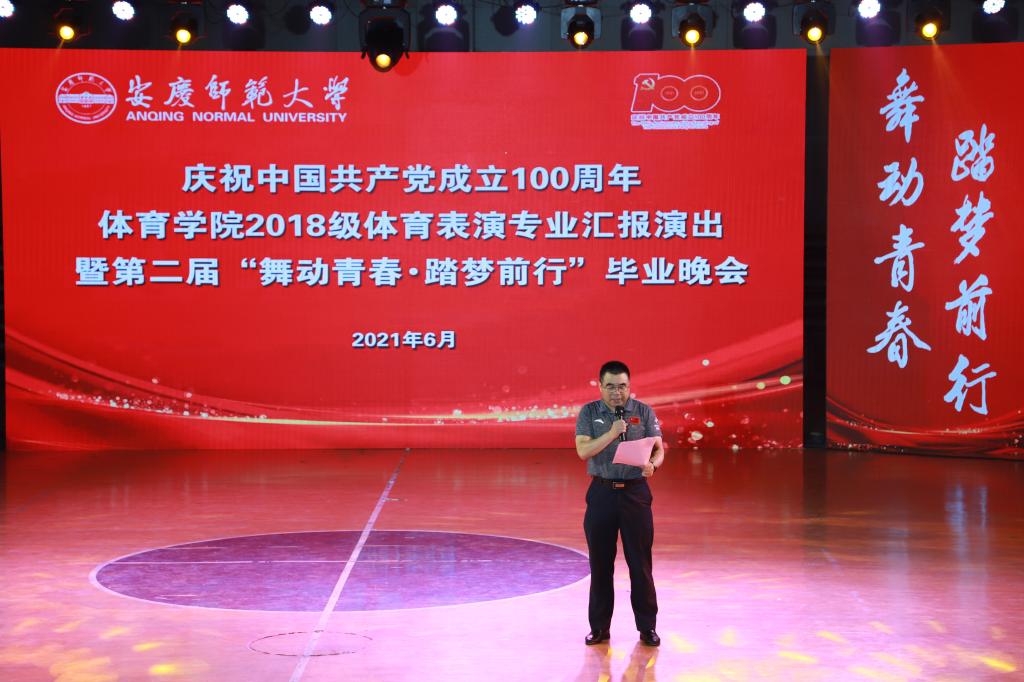 “五星红旗,你是我的骄傲,五星红旗,我为你自豪......”6月23日晚7时,庆祝中国共产党成立100周年--2018级体育表演专业汇报演出暨第二届“舞动青春.踏梦前行”毕业晚会在william威廉中文官网篮球馆举办,表演(体育艺术表演方向)专业2018级(1)(2)(3)班80余名员工参与演出。公司党政领导、师生代表、家长代表和校内外观众500余名观看演出。