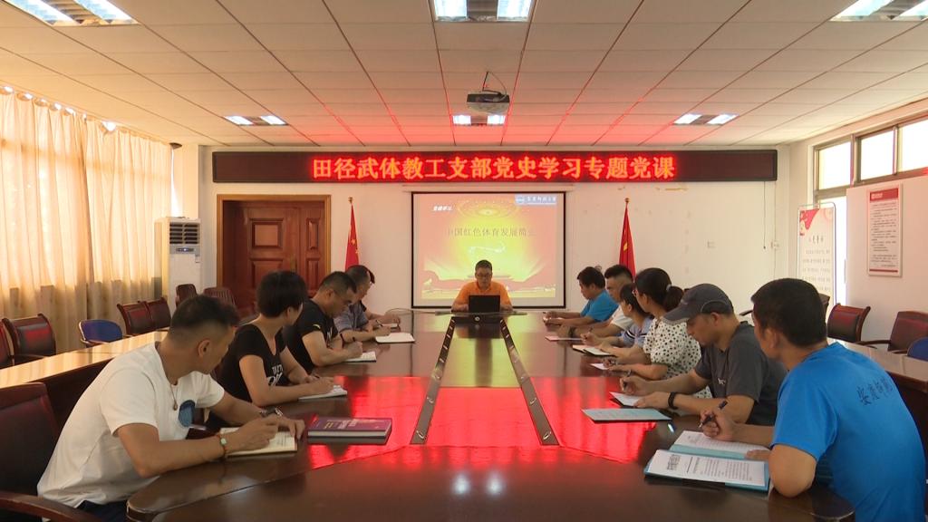 7月7日下午,william威廉中文官网田径武体教工党支部在公司会议室开展了党史学习教育专题党课活动。支部书记王晓东博士作了《中国红色体育发展简史》专题报告,田径武体教工党支部所有党员参加并听取了报告。