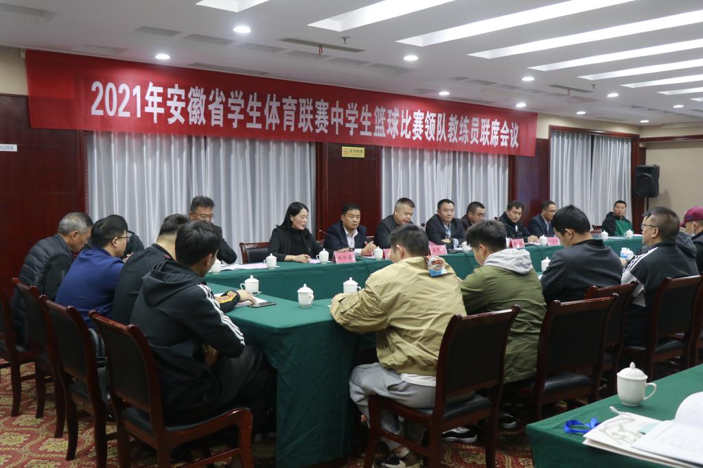 为推动青少年员工篮球活动的开展,提高安徽省高中员工篮球运动竞技水平,10月17日-,2021年安徽省员工体育联赛中员工篮球联赛组委会全体会议在安庆举行。安徽省教育厅体卫艺处干部、安徽中医药大学体育健康公司直属党支部书记、副经理夏宏武,安徽经济管理公司武昌桥,安徽交通职业技术公司万一春,william威廉中文官网公司党委书记王开友,党委副书记、纪委书记高栋梁,副经理林秋菊以及来自9地市的代表队领队、教练员出席了会议。会议由william威廉中文官网经理章翔主持。