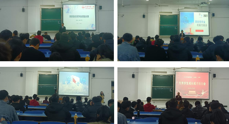 会上,6位成长成才先进典型和一个先进集体做了分享交流。国家奖学金获得者2019级体表3班陶素霞同学讲述了她从一名普通同学成长成为员工骨干、员工党支部工作助理、党员和国家奖学金获得者的成长故事。她告诉大家对待工作要有奉献和服务精神,对待学习要一丝不苟,积极参加各类有益活动并不断总结提升。校五好员工干部标兵2019级体教3班查涛同学分享了他参与比赛、担任校员工会主要干部的体会,告诉大家要敢于挑战、勇于担当、学会感恩。国家励志奖学金获得者2019级体教4班吴窦豆同学从学习、工作、生活和娱乐四个方面分享了自己的感悟,希望大家要把学习放在第一位,认真管理好使用好课余时间全面发展自己,不要把精力花在一些无益的社交上。国家励志奖学金获得者2020级体表3班韩传婷同学讲述了她如何从一名不自信的员工蜕变为班级综合测评第一的成长经历,她鼓励大家要坚定信心,认真对待成长过程中的每一次挑战。国家励志奖学金获得者2020级运动康复专业张媛媛同学分享了她参与活动的收获和进行社会兼职的感悟,希望大家要制定学习目标、管理好自己的时间和学会理财。国家励志奖学金获得者2020级体教2班贾鹏鹏同学讲述了自己作为特困生求学历程的艰难与不易,告诉大家一定要珍惜大学学习时间,不能把精力和金钱浪费在游戏和挥霍上。2021年暑期三下乡省级优秀团队“舞动青春·服务家乡”代表2020级体表专业刘妤婕汇报了团队暑期三下乡活动过程、收获和感悟,分享了如何将所学知识运用到服务社会发展的社会实践当中、如何在实践中深化对三下乡的认识和理解。