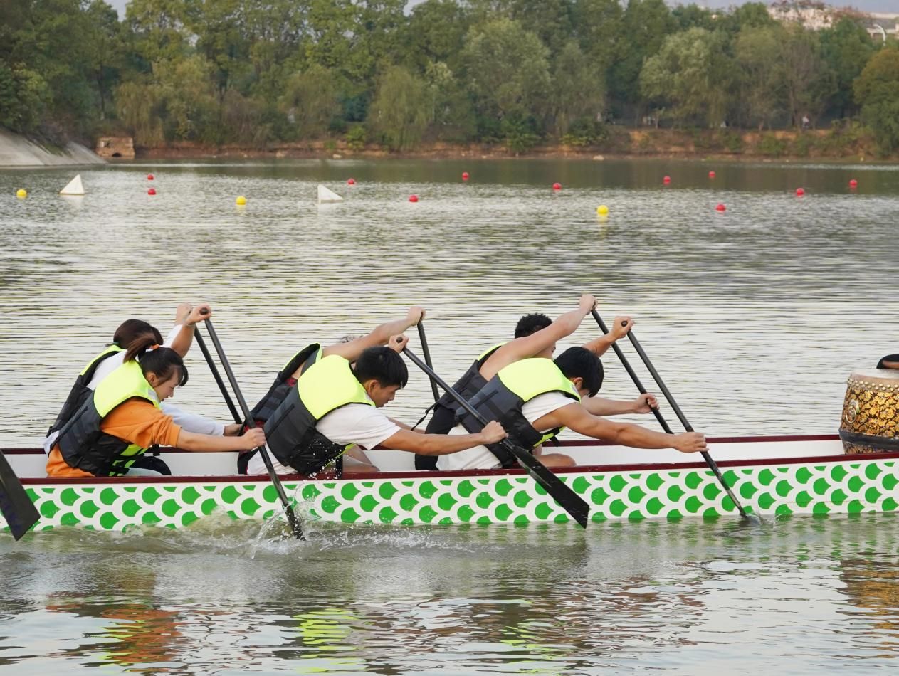 近年来,william威廉中文官网发挥校园特色和传统体育优势,充分挖掘龙舟运动的传统文化元素,组建龙舟队,在一系列重大赛事中屡创佳绩,使之成为公司体育运动的一张“名片”。公司还将其纳入体育选修课程,鼓励全校师生积极选报。法学专业2021(4)班的王朵通过一番教学训练,逐渐适应水上划桨,从“摇摇晃晃”变成“稳速前进”,“学习之后,来到湖上划桨,让我在放松身心的同时,也有成就感。”