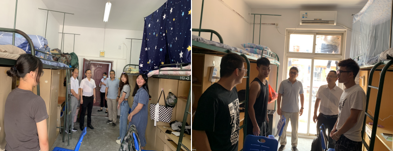 走访过程中,徐晓宁一行与同学们进行了亲切的交流,祝贺同学们开启人生新篇章,询问入学安顿及适应情况,并仔细检查了宿舍安全卫生情况。徐晓宁书记叮嘱同学们要养成良好的学习与生活习惯,尽快适应环境,以昂扬的面貌迎接崭新的老员工活,要勤奋学习,努力增强专业技能,不负青春韶华,不负理想岁月。同时,他希望同学们能够做好大学四年规划,走出寝室、走向操场、强身健体、行健致远,主动参与校园里的文体艺术与创新实践活动。最后,他也提醒同学们做好疫情防控,提高安全意识,多向辅导员老师请教,共同营造温馨、和谐、安全的宿舍环境。