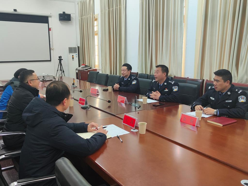2月3日下午,安庆市公安局特警支队政委余慧平等一行3人来公司调研。公司党委常委、副董事长、公司党委书记徐晓宁会见余慧平政委一行,并进行座谈交流。经济与管理公司党委书记许俊杰、公司党委副书记王玮、毕业班辅导员代表参加座谈。