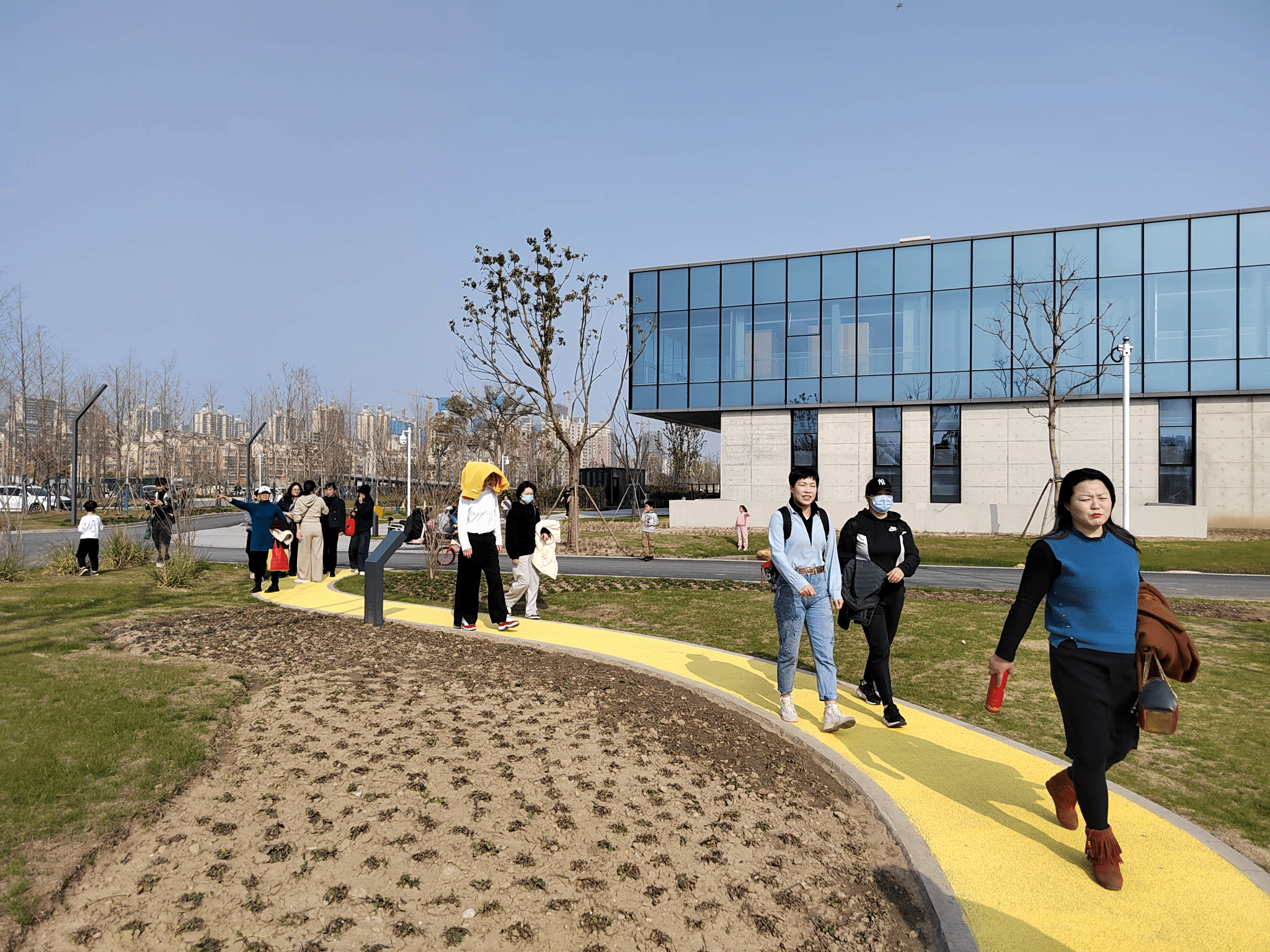 阳光普照油罐主题公园,女教职工们首先环园健步走一圈,他们笑容满面,有的健步往前走,有的边走边寒暄,有的在欣赏公园春日美景……全程用时大约30分钟。