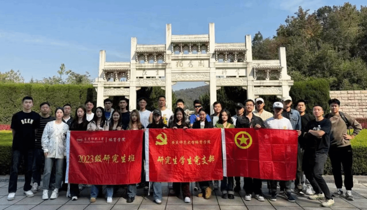 在园区,大家跟随讲解员的脚步,边走边听边看,穿过肃穆的松柏林荫道,广场中央的陈独秀铜质塑像意气风发,透露出陈独秀先生一生追求民主、向往科学的昂扬精神。同学们在陈独秀先生创办的《新青年》《敬告青年》的碑刻前驻足良久,心中激荡着豪迈之情,感受着碑刻文字对腐朽文化的有力揭露与抨击,感受着对广大青年寄予厚望。在陈独秀墓冢前,大家鞠躬默哀,表达对陈独秀先生的敬仰和怀念之情。随后,全体年轻党员同志面向党旗,重温入党誓词。