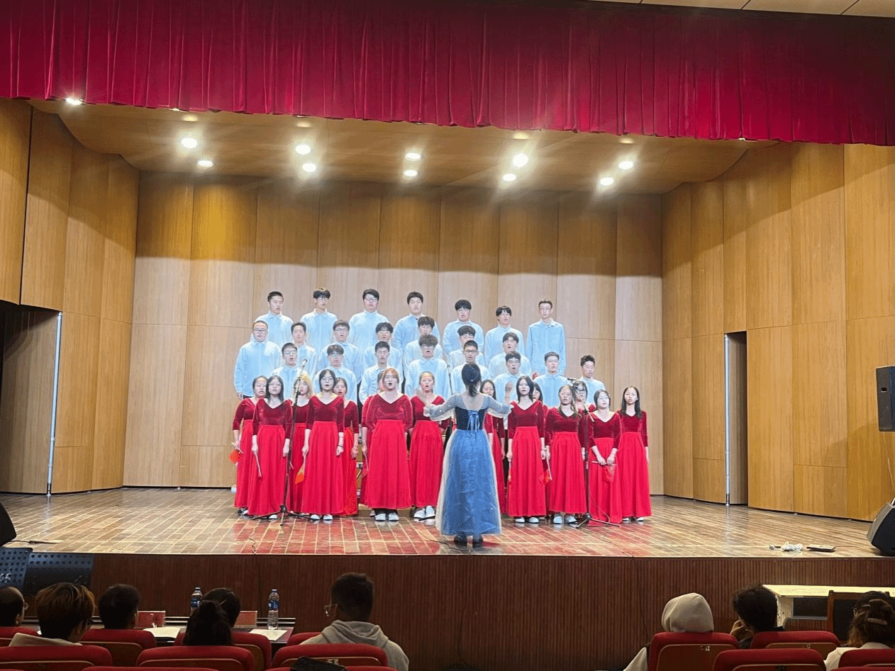 “我们每周都会练习三次以上,尽管有时会出现卡拍不准与节奏走音的问题,我们也从未放弃练习,”体育教育专业2023(5)班的杜子恒说:“我认为今天班级的合唱相较练习时进步显著,虽然有些小瑕疵,但整体效果很不错。”他表示,观看完整场演出使他直观地感受到了红歌的力量,提升了员工们对历史的认知,增强了大家的爱国情怀。