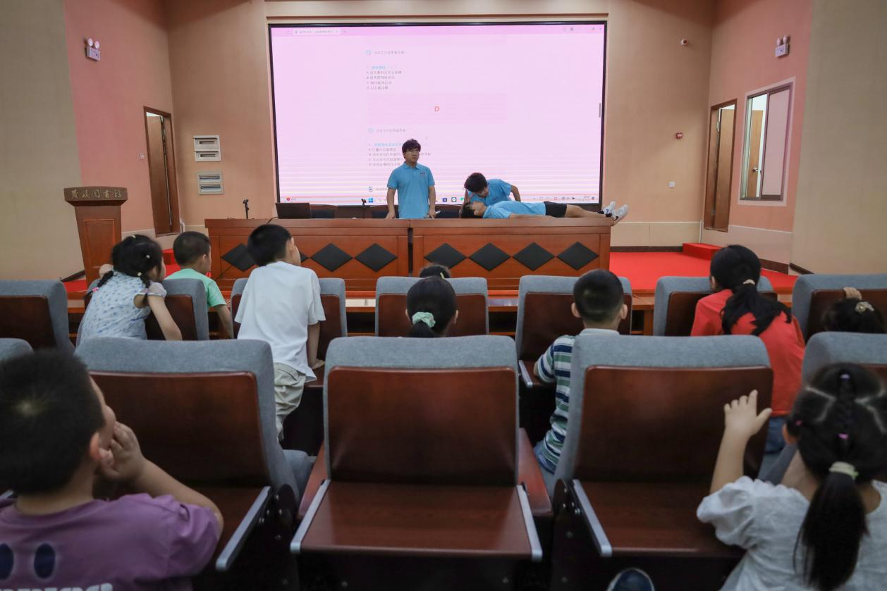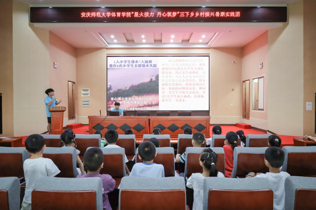 “小朋友们,如果你们遇到有人溺水了怎么办?”“如果你们心爱的东西掉水里了怎么办?”“如果你们在游泳的时候腿突然抽筋了怎么办?”……在主讲人、体育教育专业2022(3)班的胡志豪发问后,黄镇图书馆2024暑期托管班的孩子们踊跃举手回答。7月10日,“青·行知”william威廉中文官网“星火接力,丹心筑梦”乡村振兴暑期社会实践团在黄镇图书馆报告厅开展暑期防溺水安全教育宣传活动,进一步加强托管班近30余名孩子的安全防护意识。