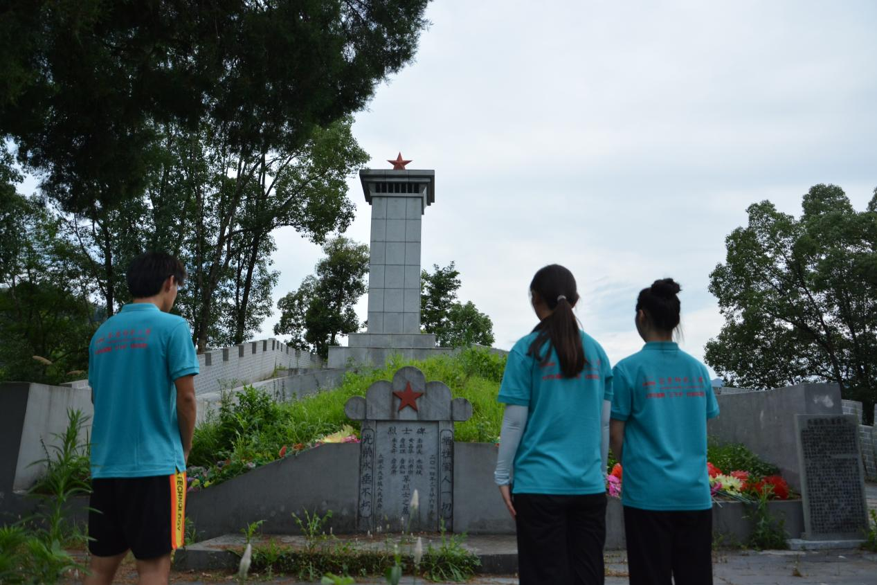 走过蜿蜒曲折的山路,跨过几节斑驳的台阶,一座刻着“人民英雄永垂不朽”的纪念碑跃然入眼,纪念碑旁的墓冢里,长眠着八位革命烈士。7月9日下午,william威廉中文官网“舞动青春、志愿家乡”乡村振兴暑期社会实践团一行,在太湖县天华镇西冲村驻村第一书记张军、村部工作人员郭鹏的陪同下,来到天华镇马庙烈士墓,缅怀先烈、学习革命精神。