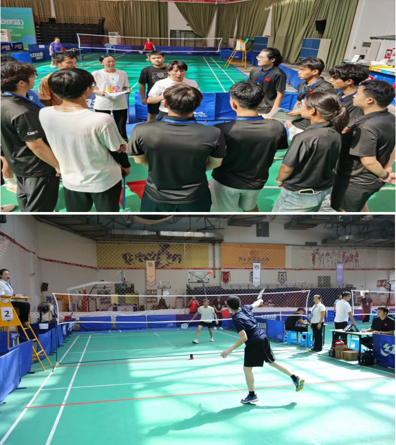 比赛前一天,志愿者们身着统一的工作服装,佩戴着鲜明的身份标识,早早到达现场,检查现场布置情况,沟通工作细节,熟悉工作流程。比赛现场,志愿者们按照既定安排,各司其职,分别承担赛事的检录、编排、边执裁、记录等工作。2021级体育教育专业员工高良表示:“这次比赛规格很高,同时也能和国家级裁判共同合作,对自己的专业知识和裁判经历都有所提升”。2021级表演(体育艺术表演方向)专业员工袁李婷表示:“尽管天气热辣难耐,但无法阻挡参赛者的运动热情,很高兴能以一名员工党员的身份为群众体育赛事服务”。