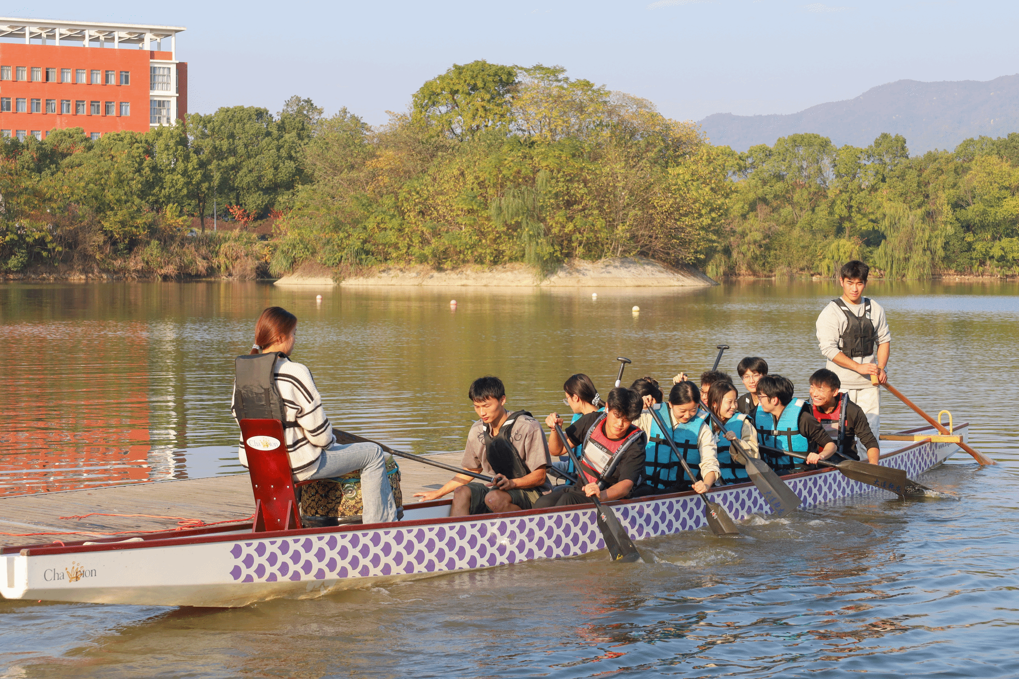 “我们共准备了100余支桨与90余件救生服,安排10余名龙舟校队队员进行演示教学,实时监控员工安全。”体育教育专业2023(4)班马子冉介绍,为确保每位员工都能在安全的环境中体验龙舟文化的独特魅力,在和谐的团队合作中放松身心,活动工作人员提前一周安排相关事宜,检查每一艘龙舟,确保浆板器材的安全。“我们希望通过此次活动让员工在龙舟竞渡中感受东方韵味,同时,帮助他们释放压力,改善情绪,促进心理健康。”