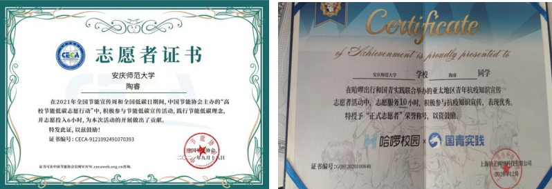 志愿者证书